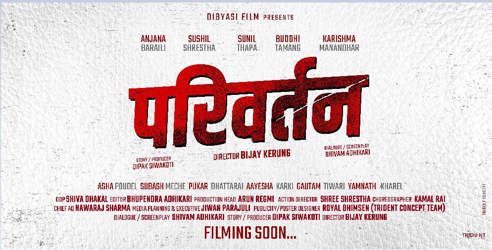 ‘परिवर्तन’ चलचित्रको छायाङ्कन आगामी हप्ताबाट सुरु हुने बताइएको छ । पूर्वी नेपालका विभिन्न जिल्लाहरूमा छायाङ्कन हुने र यसै वर्षभित्र प्रदर्शनमा ल्याउने लक्ष्य निर्माण पक्षले लिएको छ ।