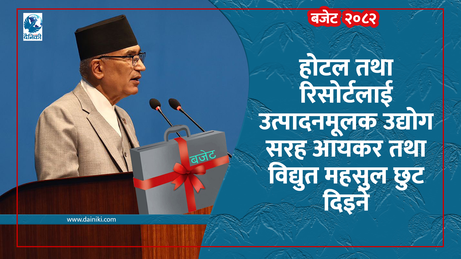बजेट पर्यटनमैत्री, होटल तथा रिसोर्टलाई उत्पादनमूलक उद्योगसरह मान्यता