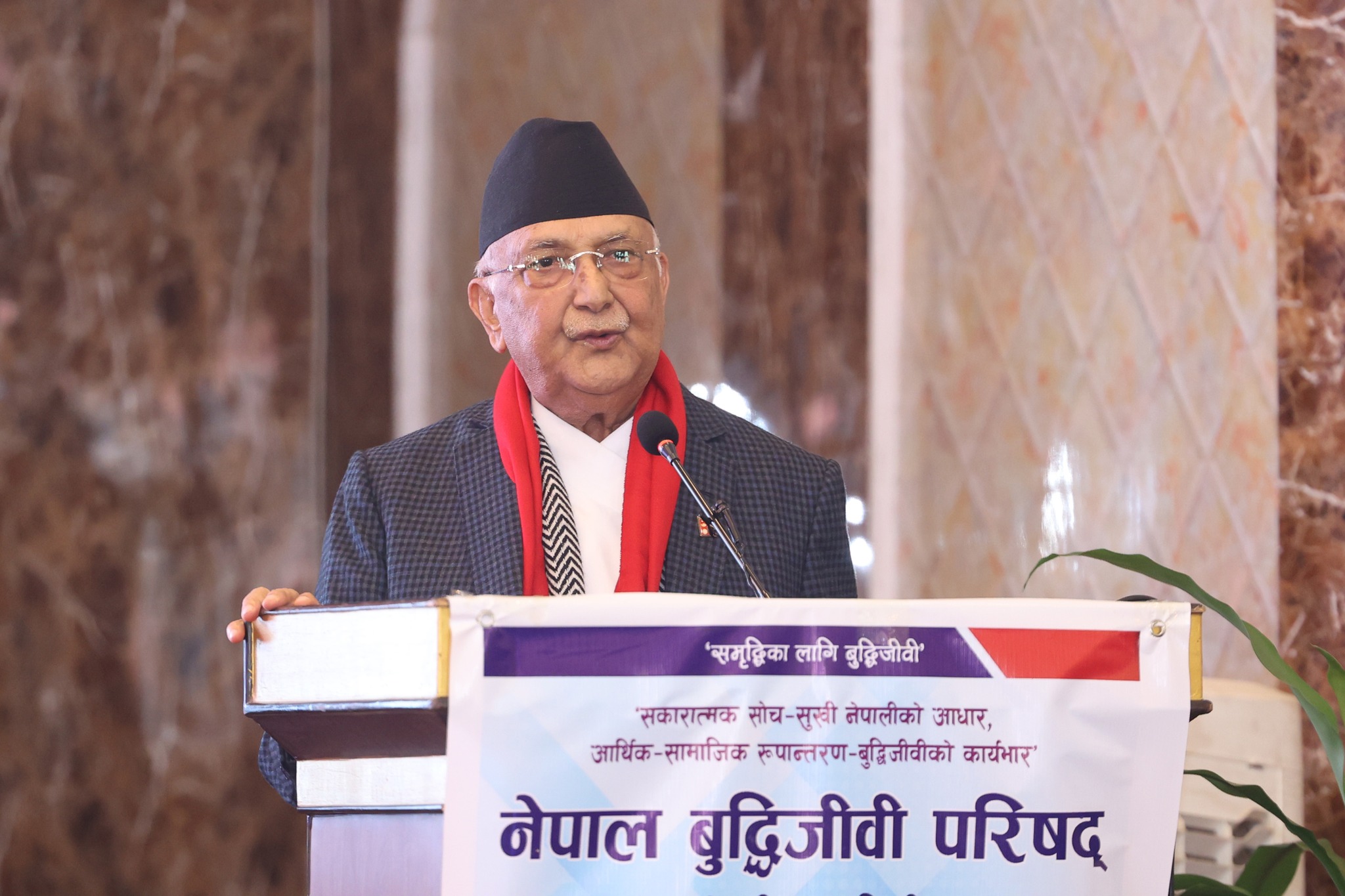 उहाँले देशमा सङ्क्रमणकालमा रहेको र देशले सही निकास खोजिरहेकाले देशको परिस्थितिमा सुधारका लागि बुद्धिजीवीको भूमिका रहने भएकाले त्यसअनुसार सक्रिय हुन आग्रह गर्नुभयो । प्रधानमन्त्री ओलीले सही कुराको समर्थन गर्दा कसैले झोले भनेर आलोचना गरे पनि परिवर्तन र जनताको झण्डा बोक्न नछोड्न आग्रह गर्नुभयो ।