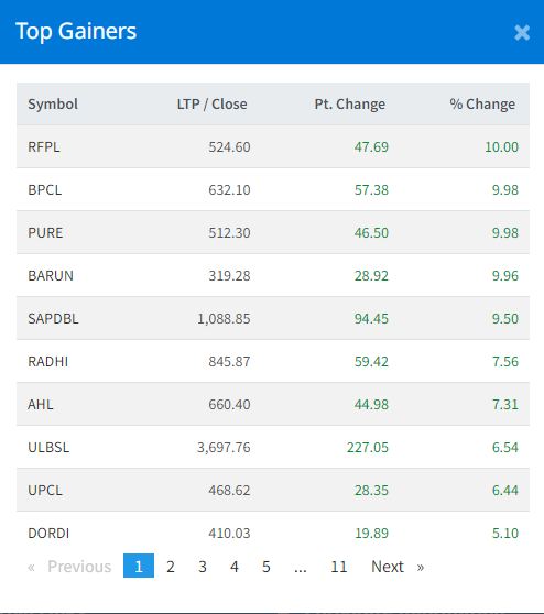 यस दिन चार कम्पनीको सेयर मूल्यमा सकारात्मक सर्किट लागेको छ । यस दिन रिभर्स फल्स पावर, बुटवल पावर कम्पनी, पियोर इनर्जी लिमिटेड र बरुण हाइड्रोपावरको सेयरमा सकारात्मक सर्किट लाएको छ । रिभर्स फल्सको यस दिन सेयर मूल्य १० प्रतिशतले बढेको छ । त्यस्तै, बुटवल पावर र पियोर इनर्जीको सेयर मूल्य ९.९८ प्रतिशत र बरुण हाइड्रोपावरको ९.९६ प्रतिशतले बढेको छ ।