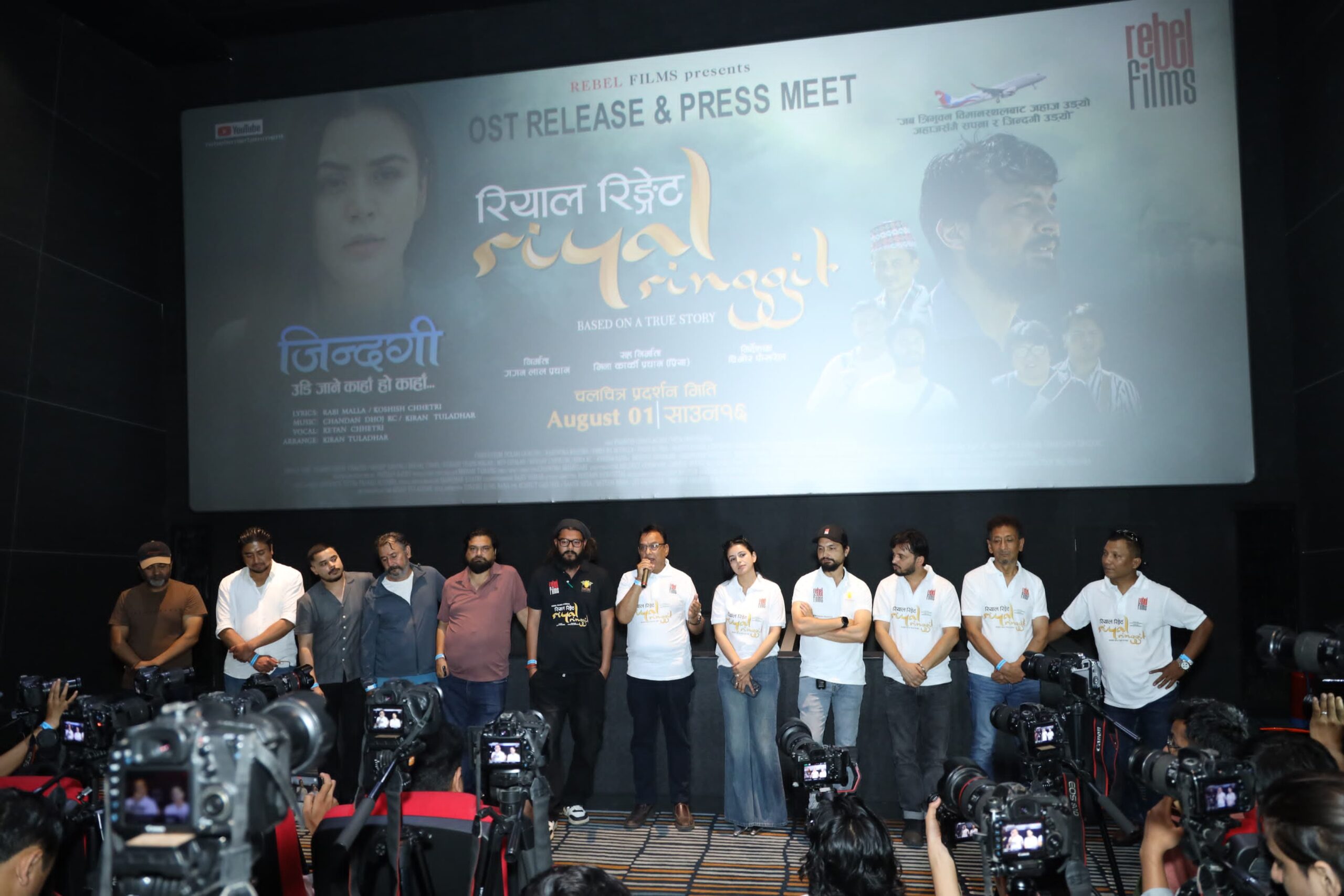 १० असार, काठमाडौं । आगामी श्रावण १६ गते प्रदर्शनमा आउने नेपाली चलचित्र ‘रियाल रिङ्गेट’को ओएसटी गीत ‘जिन्दगी: उडी जाने हो कहाँ’ मङ्गलवार काठमाडौंको आइएनआई सिनेमा, नयाँ वानेश्वरमा एक विशेष कार्यक्रमका बीच सार्वजनिक गरिएको छ । रेबेल फिल्मसद्वारा निर्मित यस चलचित्रको गीतले वैदेशिक रोजगारीमा होमिन बाध्य नेपालीहरूको मार्मिक कथा समेटेको छ ।