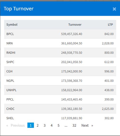 त्यस्तै, एनआरएन इन्फ्रास्ट्रक्चरको ३६ करोड १६ लाख ६० हजार, राधी विद्युत कम्पनीको २४ करोड ८९ लाख ३८ हजार, सानिमा माइ हाइड्रोपावरको २० करोड २० लाख ४१ हजार रुपैयाँ, चन्द्रागिरी हिल्सको १७ करोड ५० लाख ४२ हजार रुपैयाँको कारोबार भएको हो ।