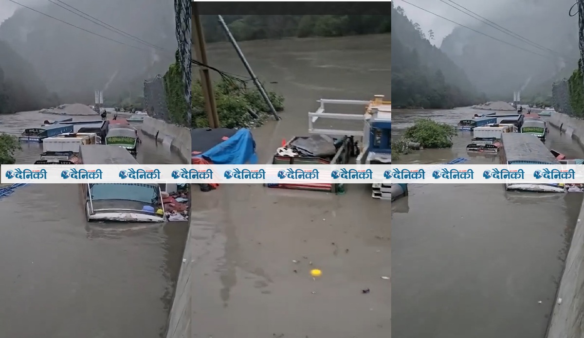 भोटेकोशीमा ठूलो बाढी, रसुवागढीको मितेरी पुल र भन्सारमा रोकिएका गाडी बगायो