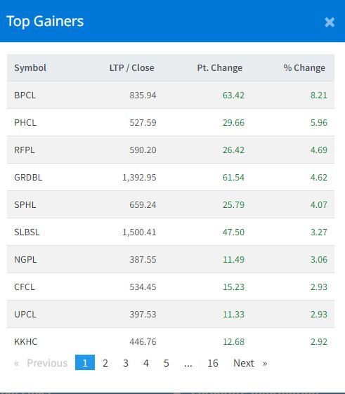 यस दिन बुटवल पावर कम्पनीको सेयरमूल्य सर्वाधिक बढेको छ । यस दिन कम्पनीकाे सेयरमूल्य ८.२१ प्रतिशतले बढेको हो । त्यसैगरी यस दिन पिपुल्स हाइड्रोपावरको सेयरमूल्य ५.९६ प्रतिशत, रिभर फल्स पावरकोसेयरमूल्य ४.५९ प्रतिशतले बढेको छ ।