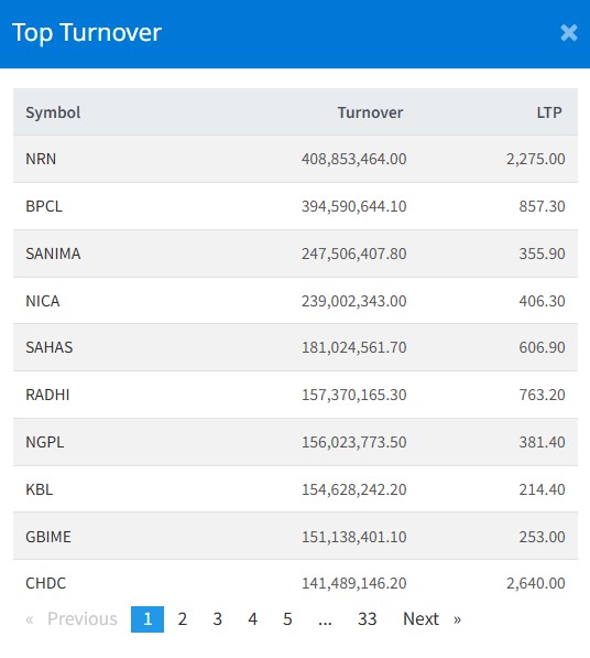 यस दिन एनआरएन इन्फ्रास्टक्चर एण्ड डेभलपमेन्ट लिमिटेडको सर्वाधिक कारोबार भएको छ । यस दिन कम्पनीको ४० करोड ८८ लाख रुपैयाँ बराबरको कारोबार भएको छ ।