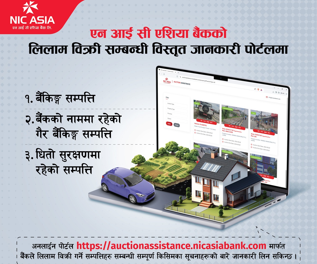 एनआईसी एशिया बैंकको लिलाम बिक्री पोर्टलमा उपलब्ध छन् यस्ता जानकारी