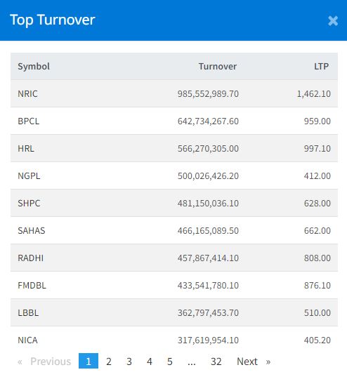 आज  नेपाल पुनर्बीमा कम्पनीको सबैभन्दा बढी सेयर कारोबार भएको छ । कम्पनीको आज ९८ करोड ५५ लाख रुपैयाँको सेयर कारोबार भएको छ । त्यस्तै, आज बुटवल पावर कम्पनीको ६४ करोड २७ लाख रुपैयाँ र हिमालयन रि इन्स्योरेन्सको ५६ करोड ६२ लाख रुपैयाँ बढी कारोबार भएको छ ।