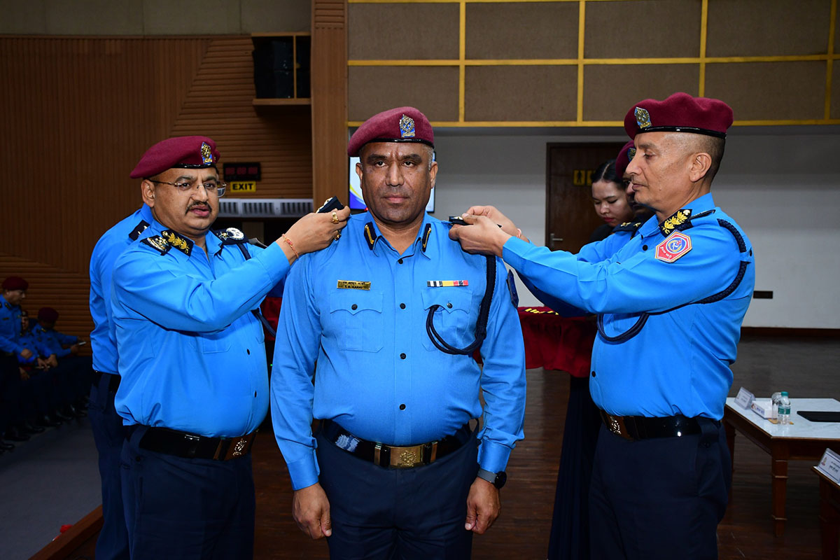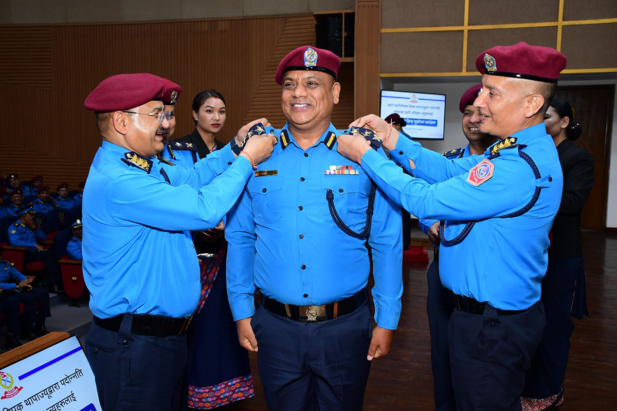 २१ साउन, काठमाडौँ । प्रहरी महानिरीक्षक दीपक थापाले पदोन्नति भएका ३५ प्रहरी अधिकृतहरूलाई दर्ज्यानी चिन्ह प्रदान गर्नुभएको छ ।