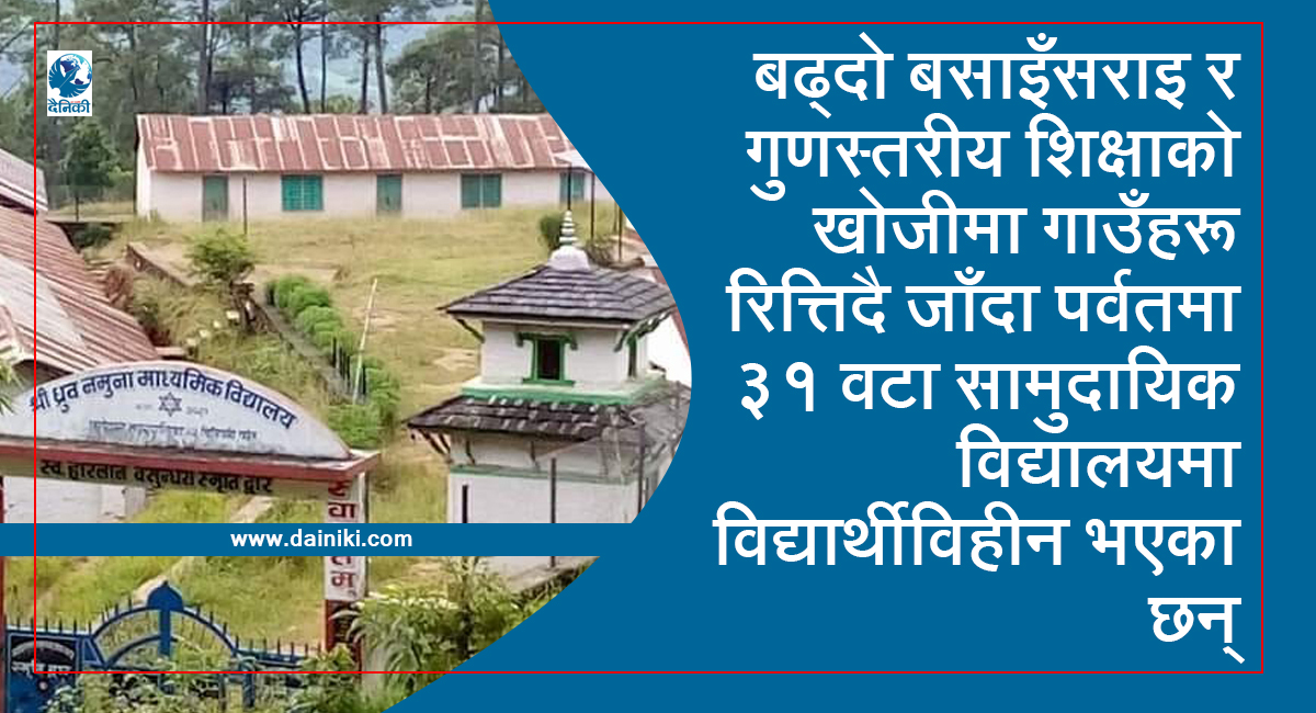 २४ साउन, पर्वत । बढ्दो बसाइँसराइ र गुणस्तरीय शिक्षाको खोजीमा गाउँहरू रित्तिदै जाँदा पर्वतमा ३१ वटा सामुदायिक विद्यालयमा विद्यार्थीविहीन भएका छन् ।