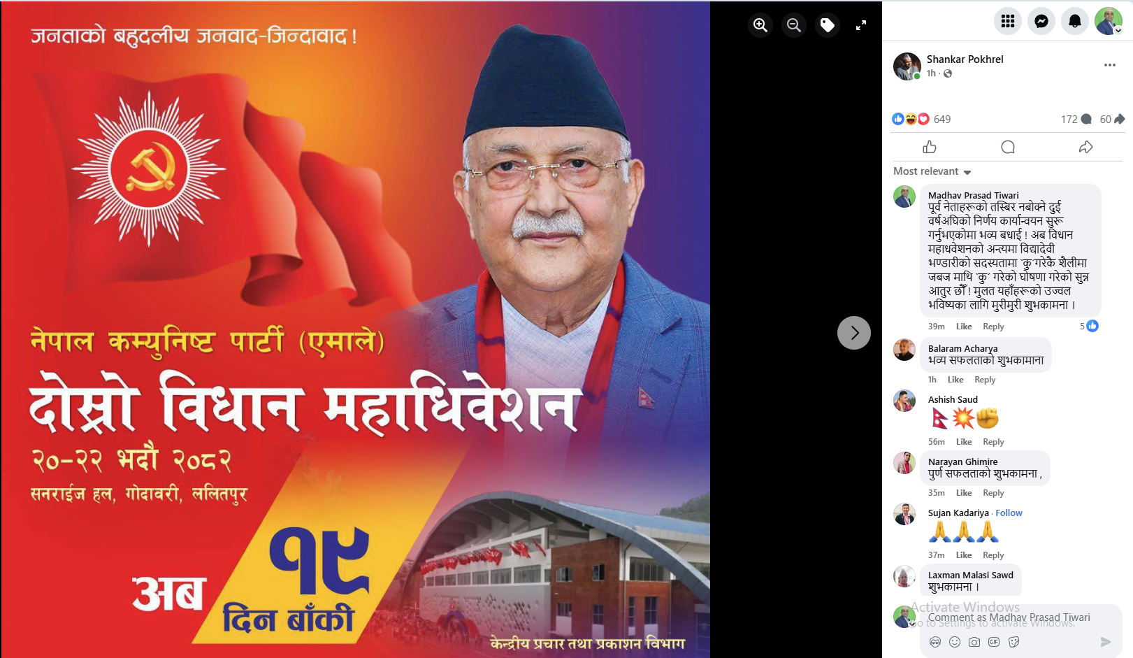 कमरेड छाडेका केपीलाई एमालेको अहिलेसम्मकै ठूलो नेता देखाउने प्रयत्न ओलीकै निर्देशमा महासचिव शंकर पोखरेल र उपमहासचिवद्धय प्रदीपकुमार ज्ञवाली र विष्णु रिमालले कार्यान्वयन गरिरहनुभएको छ ।