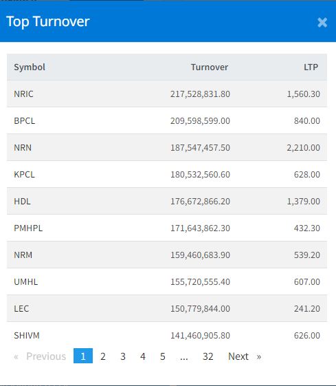 आज नेपाल रि इन्स्योरेन्सको सर्वाधिक कारोबार भएको छ । यस दिन कम्पनीको २१ करोड ७५ लाख रुपैयाँको कारोबार भएको हो । त्यस्तै, यस दिन बुटवल पावर कम्पनीको २० करोड ९५ लाख रुपैयाँ, एनआरएन इन्फ्रास्टक्चरको १८ करोड ७५ लाख रुपैयाँ, कालिका पावर कम्पनीको १८ करोड पाँच लाख रुपैयाँको कारोबार भएको छ ।