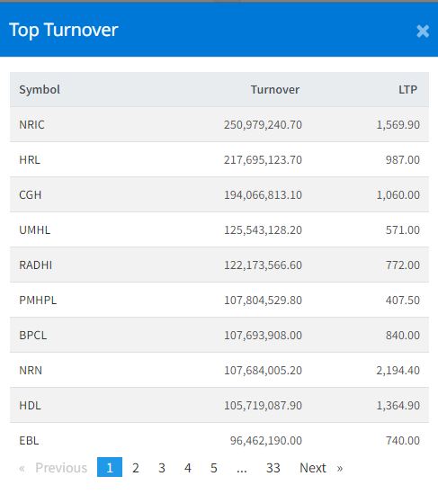 यस दिन नेपाल पुनर्बीमाको सर्वाधिक कारोबार भएको छ । कम्पनीको आज २५ करोड नौ लाख रुपैयाँको कारोबार भएको छ । त्यस्तै, यस दिन हिमालयन रि इन्स्योरेन्सको २१ करोड ७६ लाख रुपैयाँ, चन्द्रागिरी हिल्सको १९ करोड ४० लाख रुपैयाँ, युनाइटेड मोदी हाइड्रोपावरको १२ करोड ५५ लाख रुपैयाँको सेयर कारोबार भएको छ ।