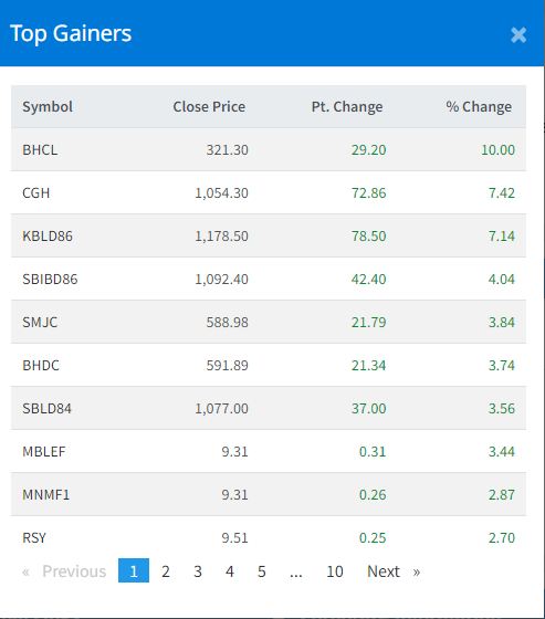 आज विकास हाइड्रोपावरको सेयरमूल्यमा सकारात्मक सर्किट लागेको छ । कम्पनीको सेयरमूल्य आज प्रतिकित्ता २९ रुपैयाँले बढेकाे छ ।त्यस्तै, यस दिन चन्द्रागिरी हिल्सकोसेयरमूल्य ७.४२ प्रतिशत, सगरमाथा जलविद्युत कम्पनीको सेयरमूल्य ३.८४ प्रतिशत, बिन्द्यावासीनी हाइड्रोपावरको ३.७४ प्रतिशतले सेयरमूल्य बढेकाे छ ।