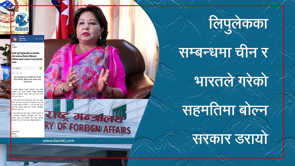 चिनियाँ विदेशमन्त्री वाङ यीको दुई दिने भारत भ्रमणका क्रममा भारत र चीनबीच नेपाली भूमि लिपुलेक बाटोबाट द्विपक्षीय व्यापार खोल्न सहमति भएको छ । भारतीय विदेशमन्त्री एस जयशंकरसँगको वार्ताका क्रममा यो विषयमा सहमति भएको भारतीय विदेश मन्त्रालयले उल्लेख गरेको छ । यसअघिका सरकारले यसरी चीन र भारतले सहमति गर्दा देखिने र सुनिने गरी असहमति जाहेर गरेका थिए । तर वर्तमान सरकारले यस विषयमा बोल्न डराएको छ ।