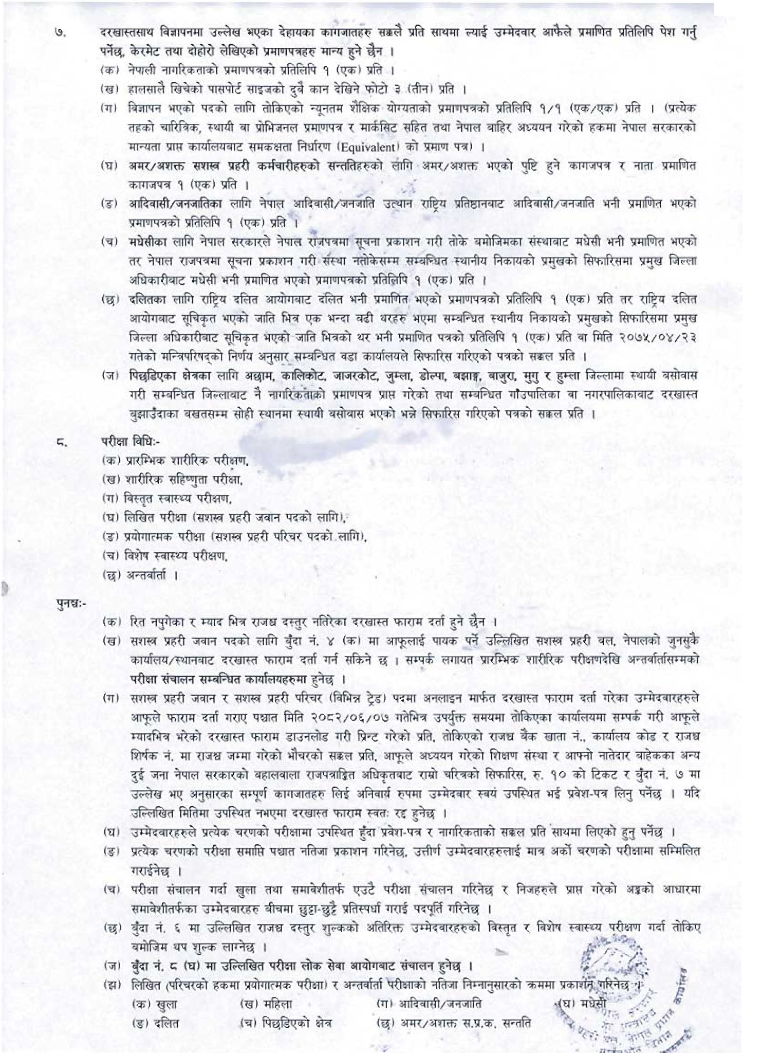 सशस्त्र प्रहरीले रिक्त रहेको साधारण समूह र साधारण उप–समूहतर्फ दरखास्त आह्वान गरेको छ । सशस्त्र प्रहरी जवानमा ८७६ जनाको लागि दरखास्त आह्वान गरिएको छ ।