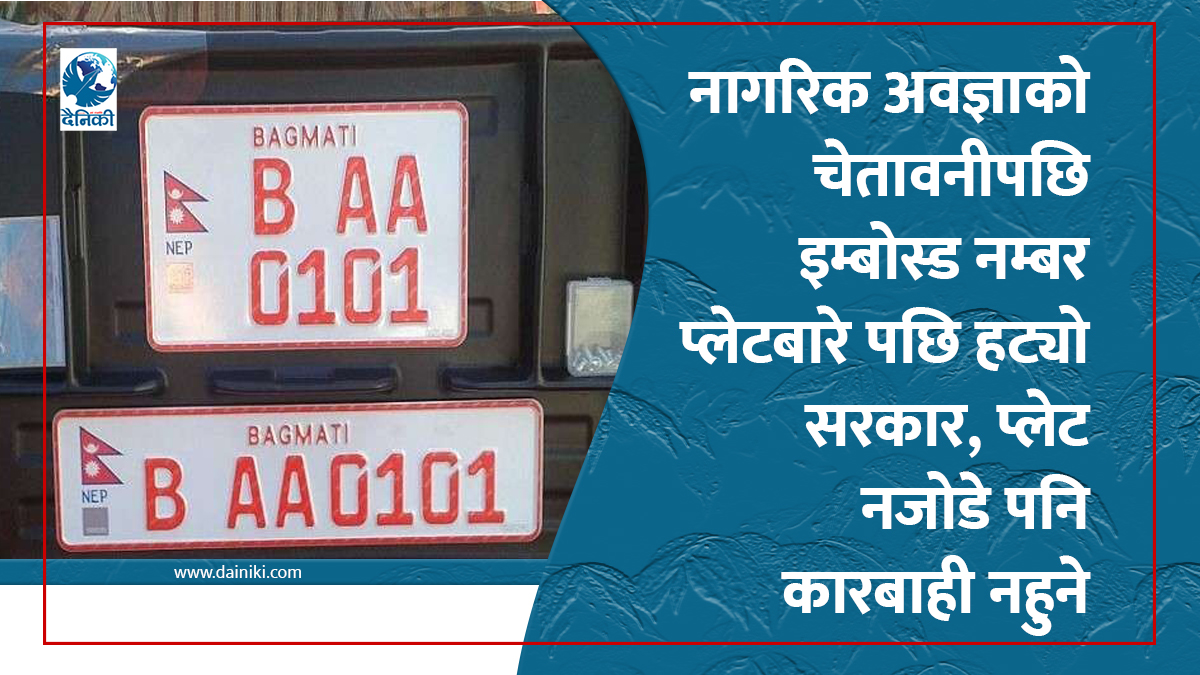 नागरिक अवज्ञाको चेतावनीपछि इम्बोस्ड नम्बर प्लेटबारे पछि हट्यो सरकार