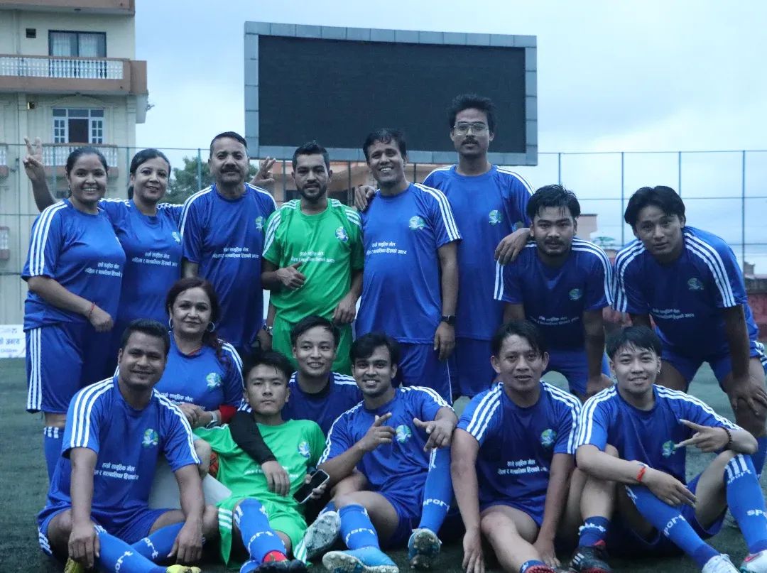 काठमाडौँ । तीजको पूर्वसन्ध्यामा साथी संस्थाले आयोजना गरेको मैत्रीपूर्ण फुटबल प्रतियोगितामा नेपाल पत्रकार महासंघ विजयी भएको छ । शुक्रबार सातदोबाटोस्थित एन्फा मैदानमा भएको खेलमा पत्रकार महासंघले नेपाल चलचित्र कलाकार संघलाई ५–० गोलअन्तरले पराजित गर्दै उपाधि हात पारेको हो ।