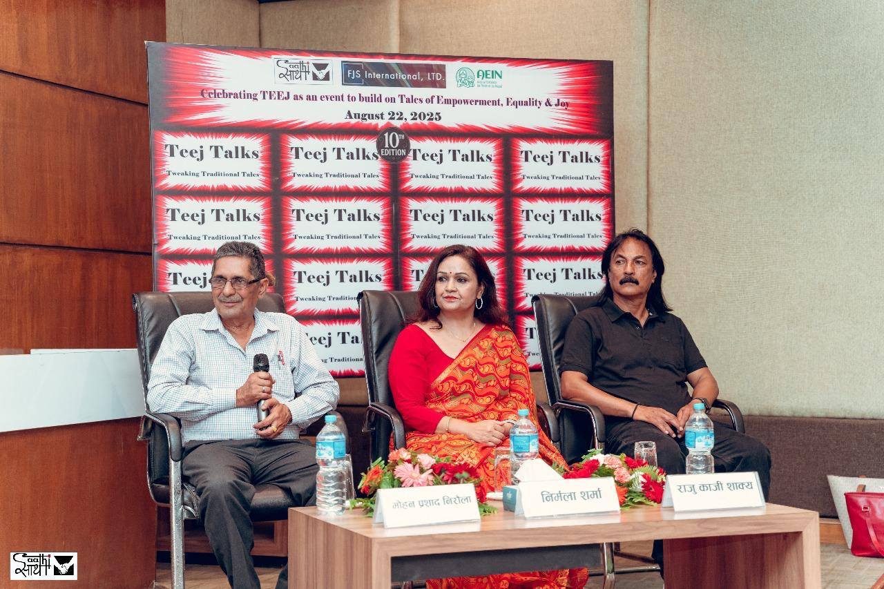 यसअघि साथी संस्थाद्वारा आयोजित १०औं तीज संवाद कार्यक्रम पनि सम्पन्न भएको थियो । सो संवादमा नेपाल पत्रकार महासंघका अध्यक्ष निर्मला शर्मा, नेपाल चलचित्र कलाकार संघका अध्यक्ष मोहन निरौला, र नेपाली फुटबल प्रशिक्षक राजु काजी शाक्य सहभागी हुनुभएको थियो । वक्ताहरूले छोरीको जन्मलाई उत्सवपूर्वक स्वागत गर्ने, महिलाको आर्थिक सशक्तिकरण गर्ने, घरायसी काममा समान जिम्मेवारी बाँड्ने तथा परिवर्तन आफ्नै घरबाट सुरु गर्ने सन्देश दिनुभएको थियो ।