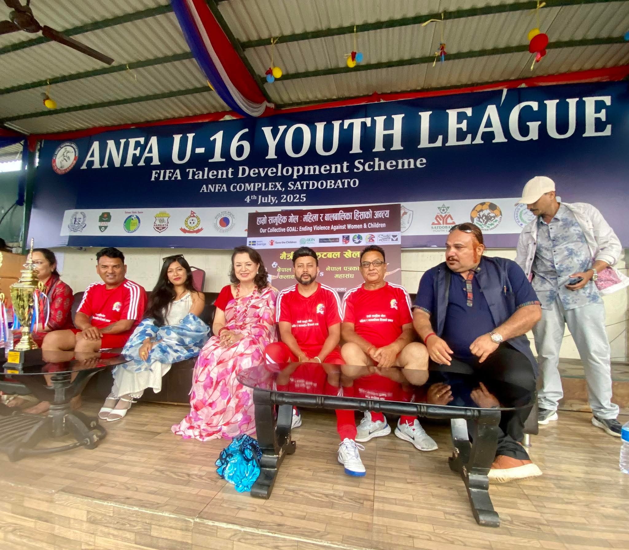 काठमाडौँ । तीजको पूर्वसन्ध्यामा साथी संस्थाले आयोजना गरेको मैत्रीपूर्ण फुटबल प्रतियोगितामा नेपाल पत्रकार महासंघ विजयी भएको छ । शुक्रबार सातदोबाटोस्थित एन्फा मैदानमा भएको खेलमा पत्रकार महासंघले नेपाल चलचित्र कलाकार संघलाई ५–० गोलअन्तरले पराजित गर्दै उपाधि हात पारेको हो ।
