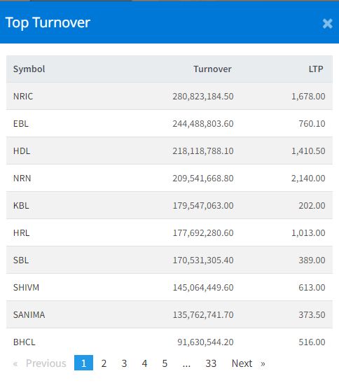 आज नेपाल पुनर्बीमाको सर्वाधिक सेयर कारोबार भएको छ । कम्पनीको आज २८ करोड ८ लाख रुपैयाँको सेयर कारोबार भएको हाे । त्यस्तै, यस दिन एभरेष्ट बैंकको २४ करोड ४४ लाख रुपैयाँ, हिमालयन डिस्टीलरीको २१ करोड ८१ लाख रुपैयाँ, नेपाल इन्फ्रास्टक्चरको २० करोड रुपैयाँको सेयर कारोबार भएको छ ।