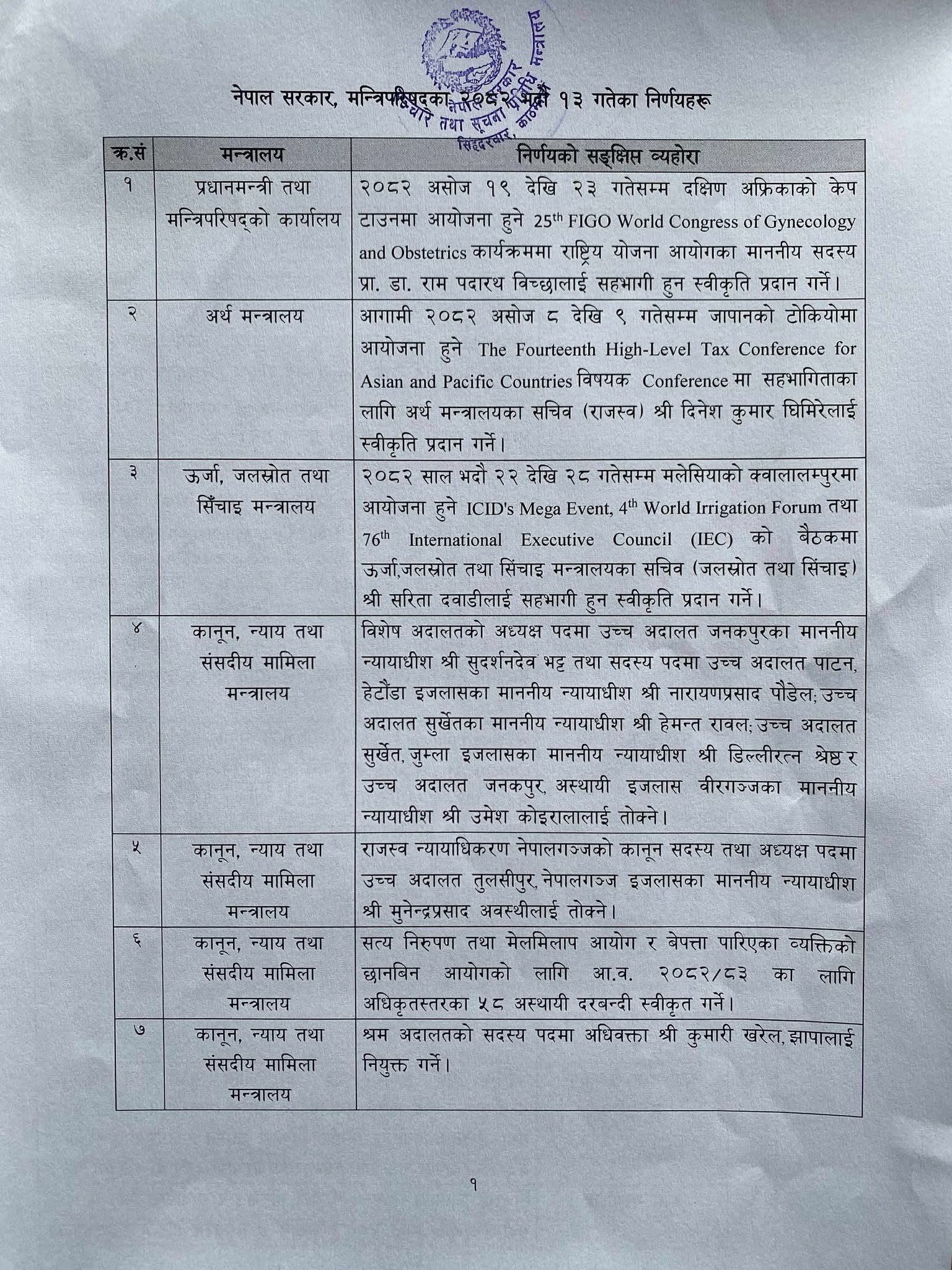 यस्ताे छ मन्त्रिपरिषद् बैठकका निर्णयहरूः