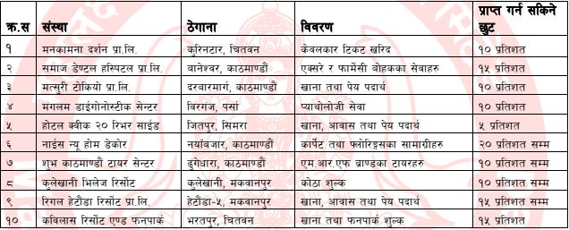 महालक्ष्मी विकास बैंकका ग्राहकहरुलाई विभिन्न संस्थाका सेवाहरुमा विशेष छुट