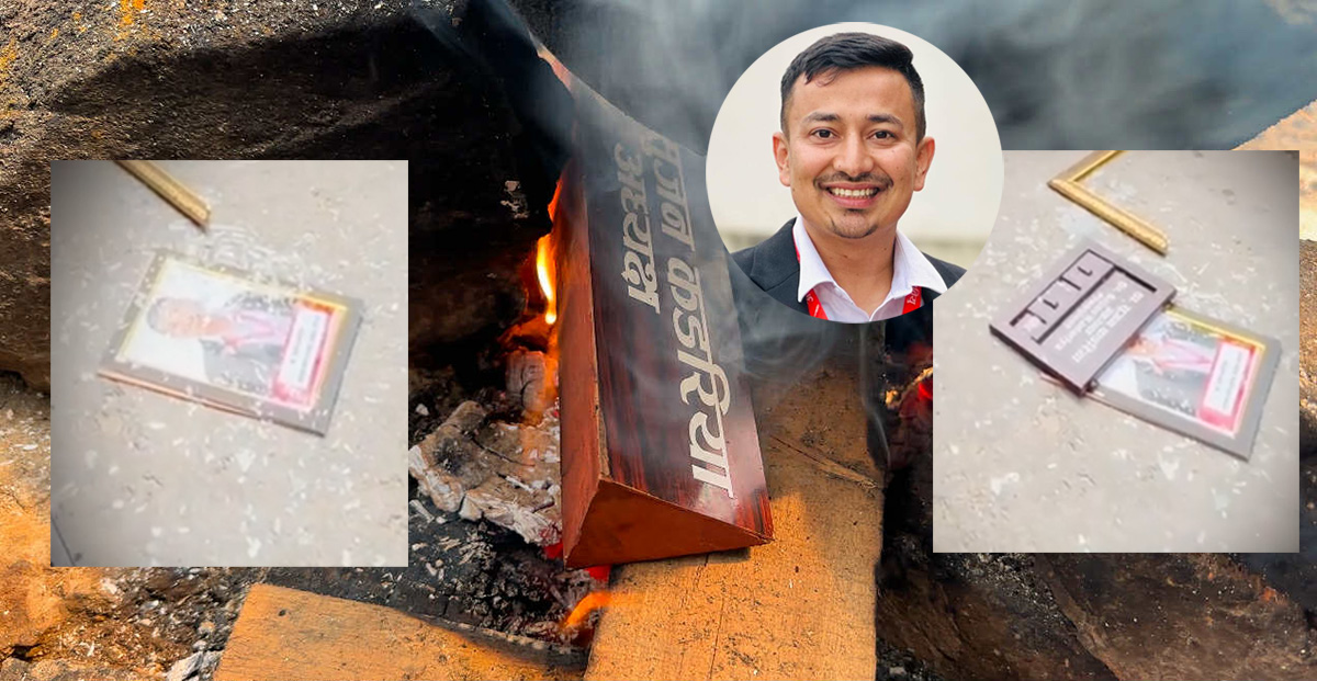 २८ भदौ, काठमाडौं। अनेरास्ववियुका अध्यक्ष सुजन कडरियाविरुद्ध असन्तुष्ट पक्षले आक्रोश प्रकट गर्दै उनको कार्यालयमा राखिएको तस्वीर र नेम प्लेट जलाइदिएका छन्।