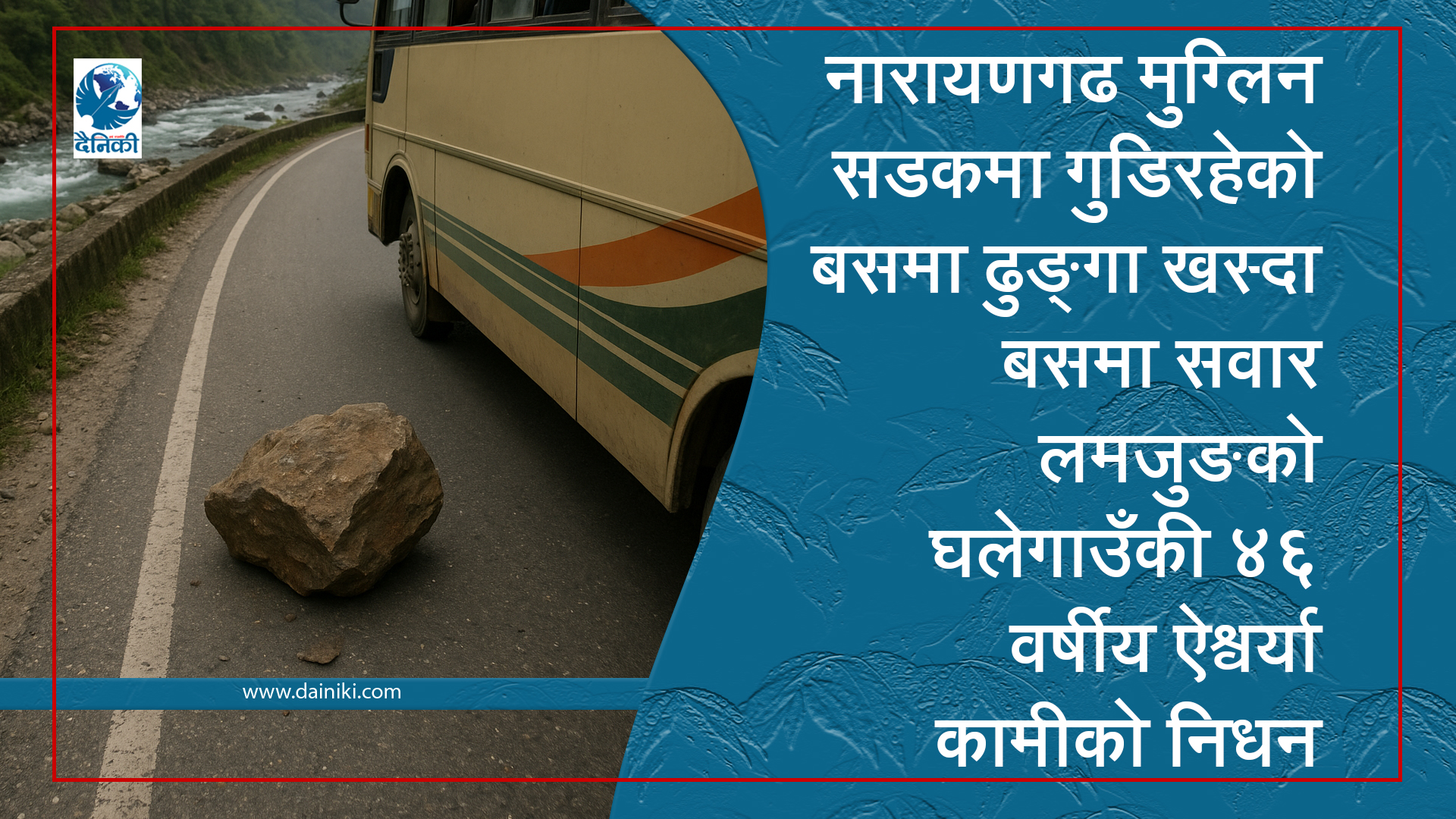 गुडिरहेको बसमा ढुङ्गा खसेर लाग्दा बसमा सवार यात्रुको मृत्यु