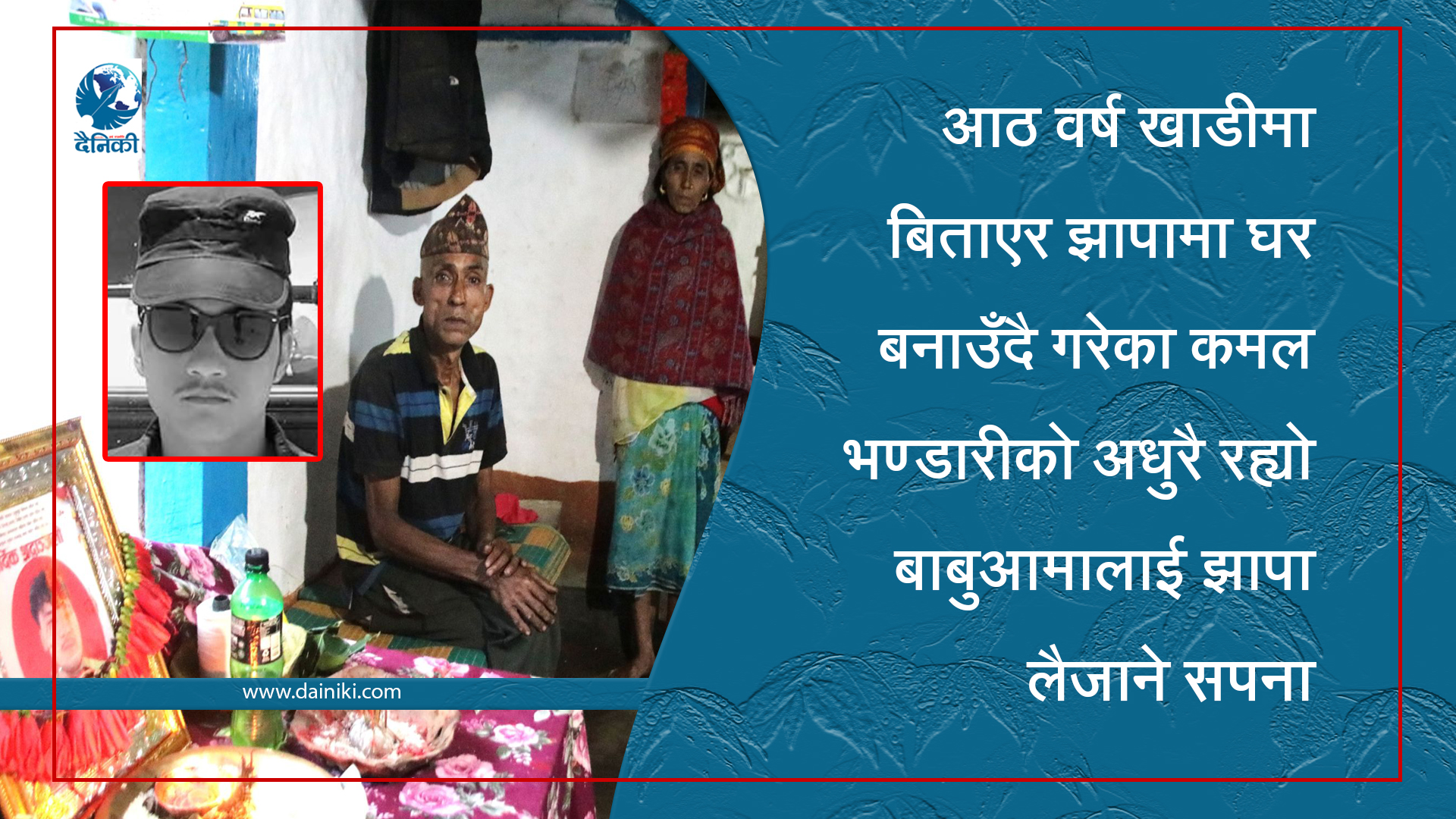 झापामा घर निर्माण सकेर बाबुआमालाई पनि लैजाने कुरा कमलले परिवारसँग गर्दै आउनुभएको थियो । परिवारको मियो नै ढलेपछि न झापाको घर निर्माण सम्पन्न भयो न त बाबुआमालाई झापा लैजाने कुरा नै । “हामीलाई पनि घर बनाइ सकेर झापा नै लैजाने भन्दै थियो । तर खोइ आज के आइलाग्यो ?”, भक्कानिदै बाबु गणेशले भन्नुभयो । भुइ तला ढलान सकिएको घर फिनिसिङ गर्न बाँकी छ ।