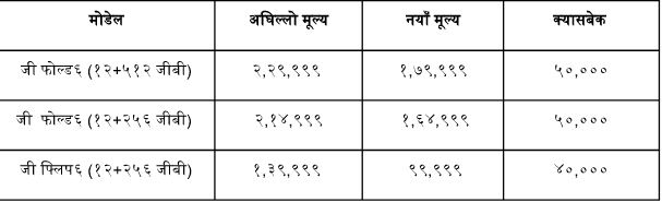 ७ असाेज, काठमाडौँ। यस दशैंमा सामसङ नेपालले आफ्ना फोल्डेबल फोनहरू विशेष छुट र सुविधासहित उपभोक्ताका लागि उपलब्ध गराएको छ। कम्पनीले नयाँ ग्यालेक्सी जेड फोल्ड६ र ग्यालेक्सी जेड फ्लिप६ फोनहरू कम मूल्यमा उपलब्ध गराउने जानकारी दिएको हो।