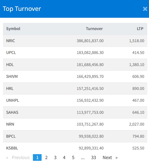 मंगलबार ३२८ कम्पनीको १ करोड १३ लाख ५३ हजार १४८ कित्ता सेयर किनबेच हुँदा ५ अर्ब ३१ करोड २७ लाख ७३ हजार रुपैयाँको कारोबार भएको छ ।