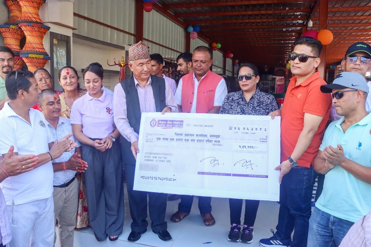 बागलुङको सृष्टि फर्निचार उद्योगका सञ्चालक ऋषिराम गौतमले आफ्नो व्यवसायको १५औँ वार्षिकोत्सवका अवसरमा सरकारलाई जिल्ला प्रशासन कार्यालयमार्फत उक्त रकम कोषमा सहयोग गर्नुभएको हो ।