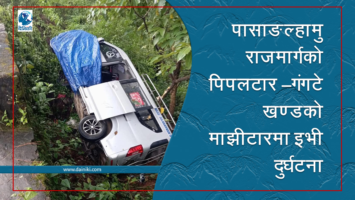 १२ असोज, नुवाकोट । नुवाकोटको माझीटारमा एउटा इभी दुर्घटनामा परेको छ । देवीघाटबाट काठमाडौँका लागि जाँदै गरेको इभी पासाङल्हामु राजमार्गको माझीटारमा दुर्घटनामा परेको हो । इभी सडकबाट पाँच मिटर तल बारीमा पुगेको छ ।