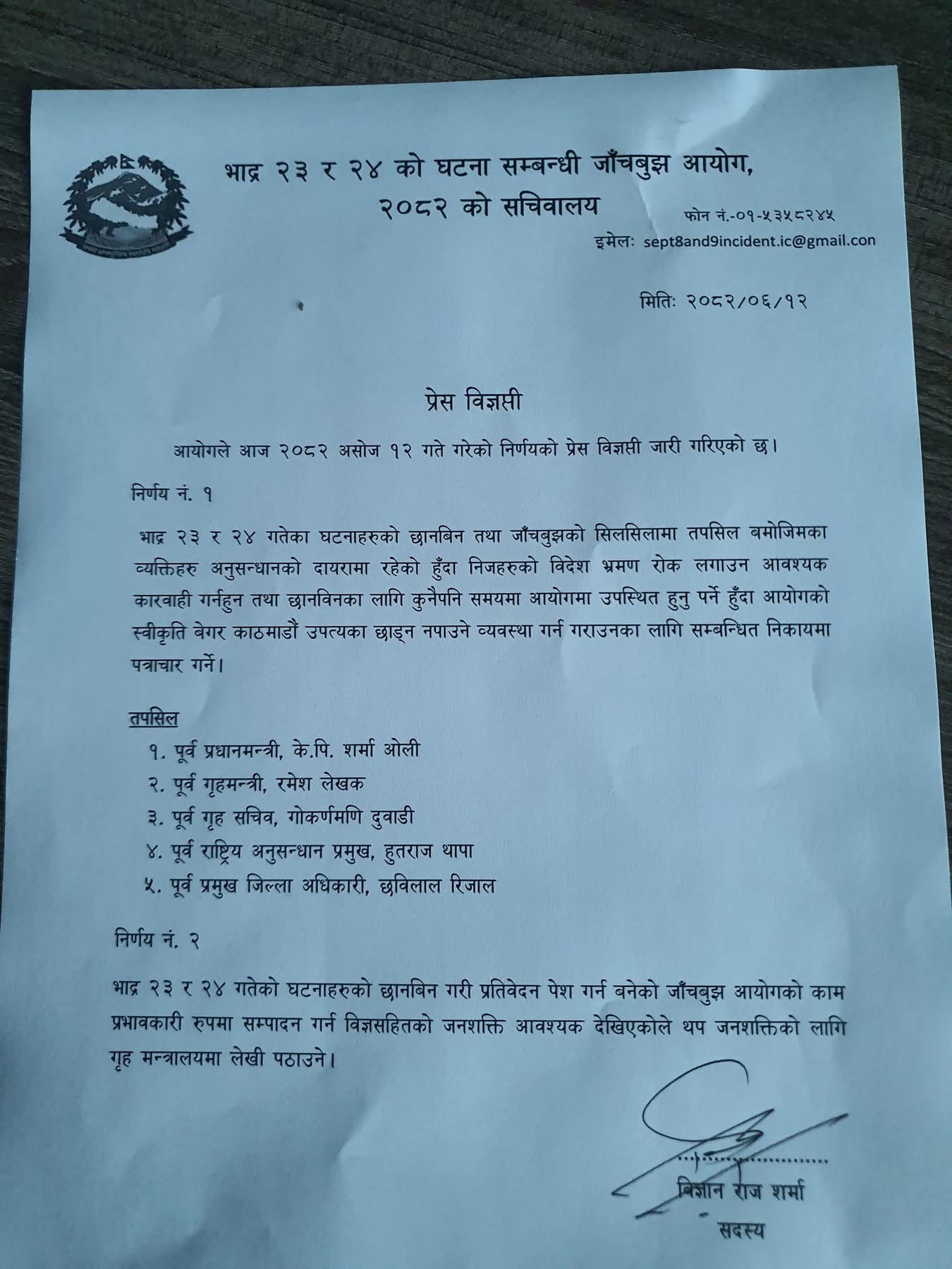 १२ असोज, काठमाडौं । सरकारले जेनजी बिद्रोहमा चरम दमन गर्ने सरकारका प्रधानमन्त्री केपी शर्मा ओली, गृहमन्त्री रमेश लेखकसहितलाई उपत्यका छाड्न रोक लगाएको छ । गौरीबहादुर कार्की नेतृत्वको जाँजबुझ आयोगले उपत्यका छाड्न रोक लगाएको हो ।