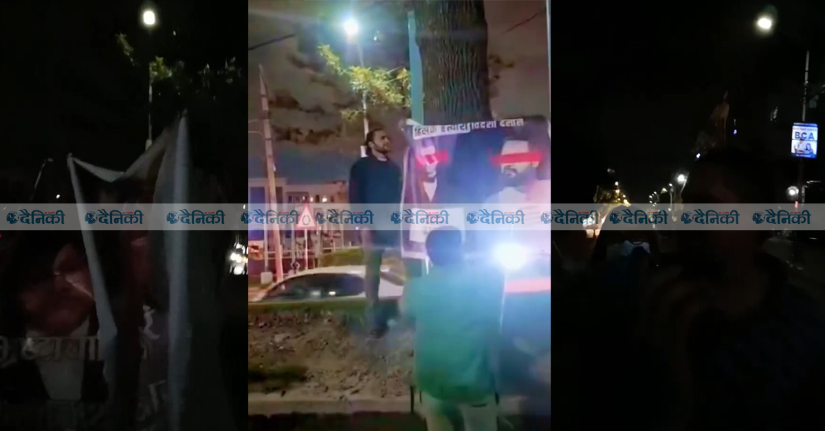२२ असोज, काठमाडौं । नेकपा (एमाले)का कार्यकर्ताका कारण मइतीघर मण्डलामा तनाव भएको छ । बुधबार राति रूखमा बानिएको व्यानर एमाले कार्यकर्ताले काटिदिएपछि जेनजी पुस्ताका युवाहरूले प्रतिवाद गरेका हुन ।