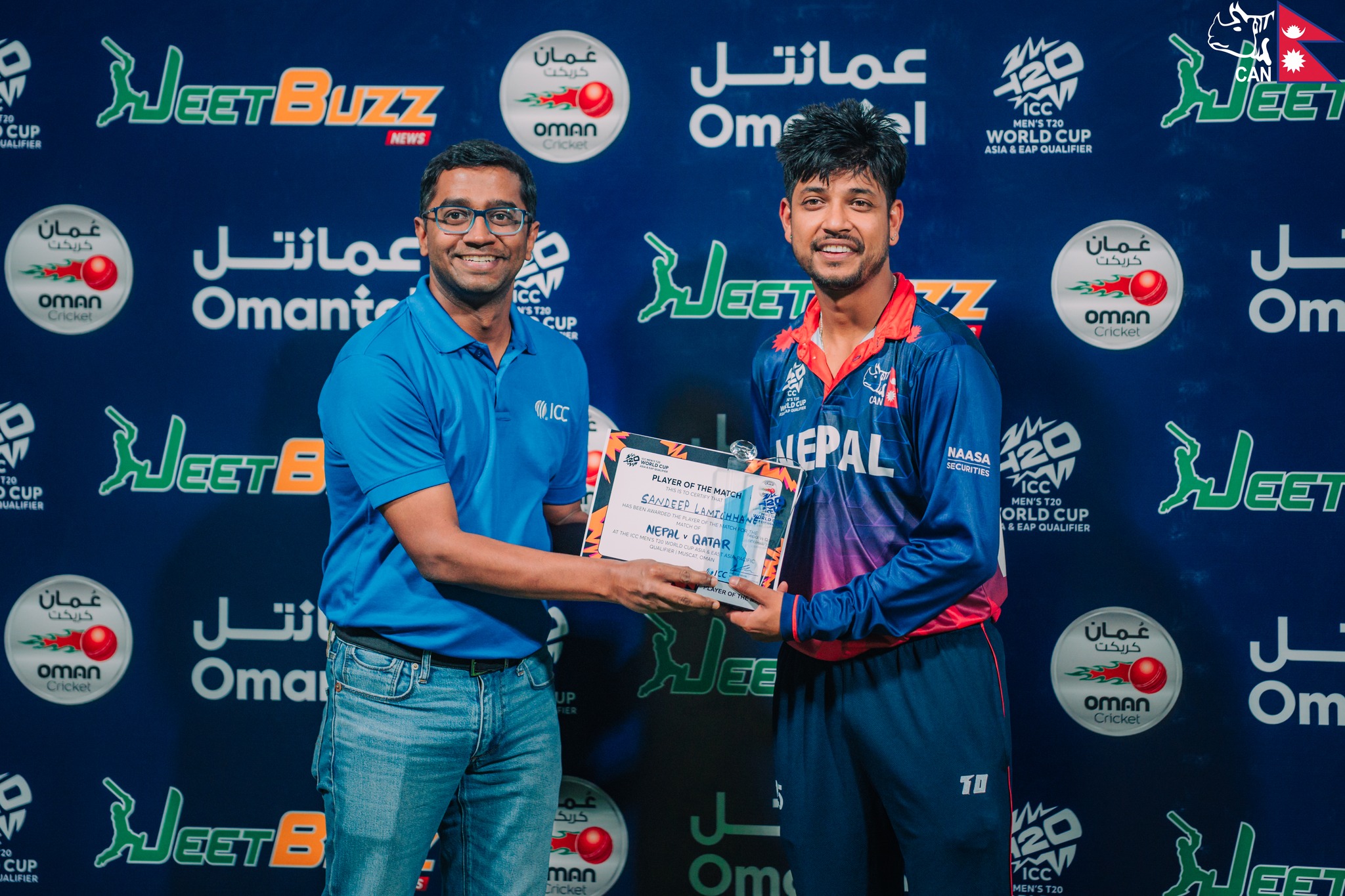 नेपालले दिएको १४८ रनको लक्ष्य पछ्याएको कतार १९ दशमलव पाँच ओभरमा १४२ रनमा अलआउट भयो । कतारका लागि ओपनर इमाल लियानागेले ३५ बलमा सर्वाधिक ५५ रन बनाए । त्यस्तै जुबेर अलीले ५२ रन बनाए । नेपालका लागि सन्दीप लामिछानले पाँच विकेट लिए । त्यस्तै नन्दन यादवले दुई र दीपेन्द्रसिंह ऐरीले एक विकेट लिए ।