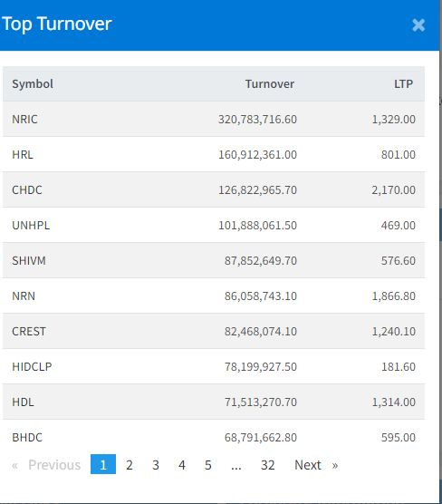 मंगलबार नेपाल पुनर्बीमा कम्पनीको सर्वाधिक सेयर कारोबार भएको छ । कम्पनीको आज कुल ३२ करोड ७ लाख रुपैयाँको काराेबार भएकाे हाे । त्यस्तै, यस दिन हिमालयन रि इन्स्योरेन्सको १६ करोड ९ लाख रुपैयाँ, सीईडीबि होल्डिङ्सको १२ करोड ६८ लाख रुपैयाँ, युनियन हाइड्रोपावरको १० करोड १८ लाख रुपैयाँ र शिवम् सिमेन्टको ८ करोड ७८ लाख रुपैयाँको सेयर कारोबार भएको छ ।