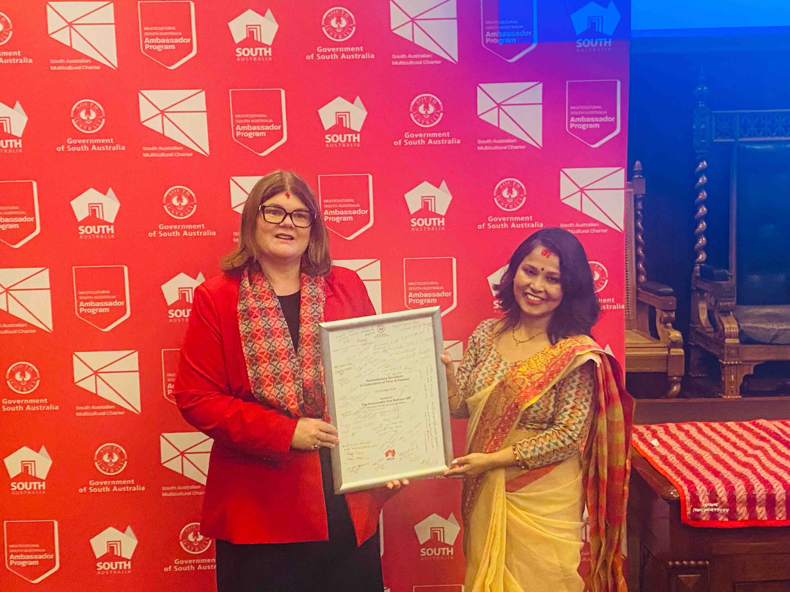 यसै क्रममा विजया दशमी तथा तिहारको उपलक्ष्यमा साउथ अष्ट्रेलिया सरकारको बहुसास्कृतिक मन्त्री जो वेटीसनले संसद भवनमा एक विशेष कार्यक्रम आयोजना गर्नु भएको छ ।