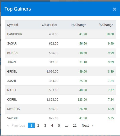यस दिन ४ कम्पनीको सेयरमा सकारात्मक सर्किट लाएको छ । यस दिन बन्दीपुर केवलकार, सागर डिस्टीलरी, बुङ्गल हाइड्रो र झापा इनर्जीको सेयरमा सकारात्मक सर्किट लाएको हा ।
