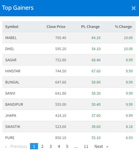 यस दिन ८ कम्पनीको सेयर मूल्यमा सकारात्मक सर्किट लागेको छ । मालिबुङ इनर्जी, दरमखोला हाइड्रो इनर्जी, बन्दीपुर केवलकार, सागर डिस्टीलरी, हिमस्टार उर्जा कम्पनी, बुङ्गल हाइड्रो, सान्भीइनर्जी र बन्दीपुर केवलकारको सेयरमा यस दिन सकारात्मक सर्किट लाएको छ ।