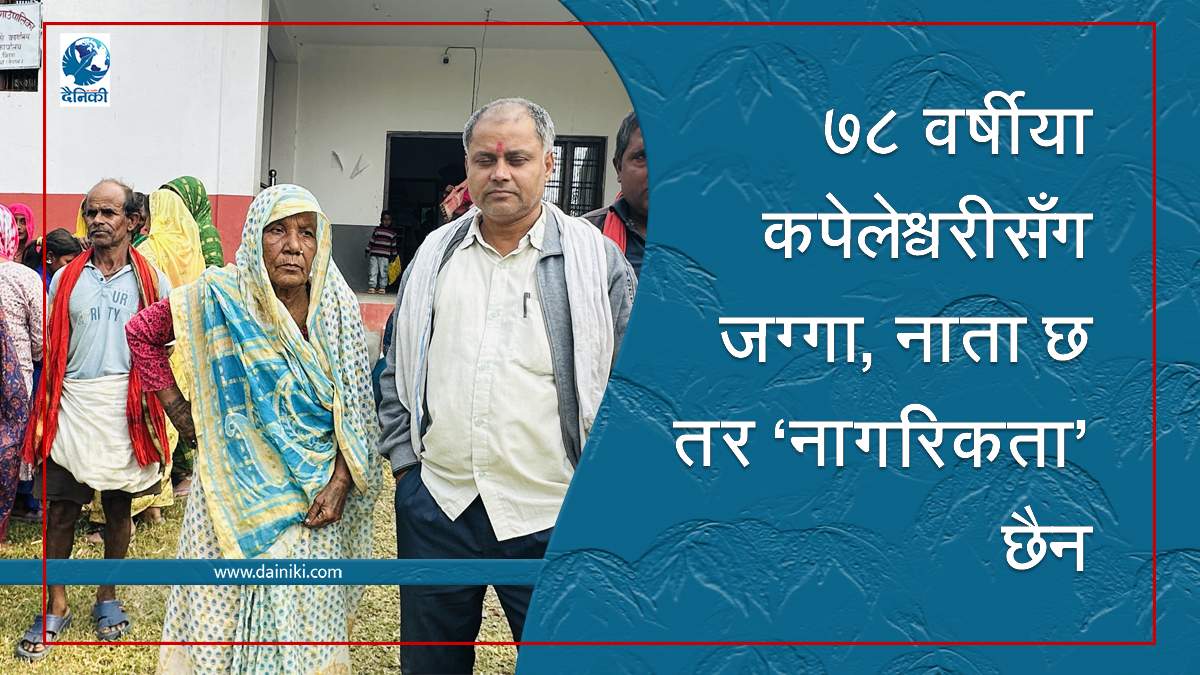 जन्म छ, विवाह छ, जग्गा छ, नाता छ, तर ‘नागरिकता’ नामको एकमात्र कागज नहुँदा ७८ वर्षीया कपेलेश्वरीको जीवन अनागरिकजस्तै भएको छ । “यदि हजुरआमा यो देशको नागरिक होइनन् भने सिधैँ भन्नुपर्यो, नागरिक हुन् भने किन आठ वर्षदेखि यातना दिइएको छ ?”, नाति रामपरीक्षणले दुःखेसो पोख्नुभयो ।