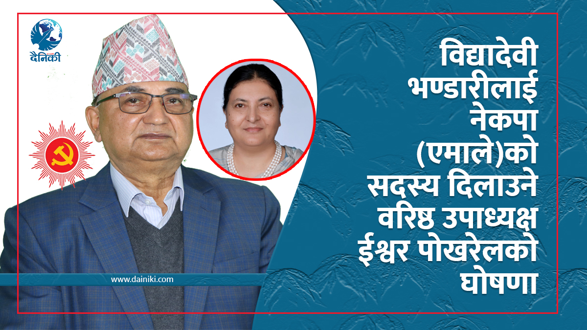 ९ मंसिर, काठमाडाैँ । नेकपा (एमाले)का वरिष्ठ उपाध्यक्ष ईश्वर पोखरेलले विद्या भण्डारीलाई एमालेको सदस्यता दिलाएरै छाड्ने घोषणा गर्नुभएको छ । मंगलबार एमालेको अध्यक्षमा उम्मेदवारी घोषणा गर्दै वरिष्ठ उपाध्यक्ष पोखरेलले यस्तो घोषणा गर्नुभएको हो ।
