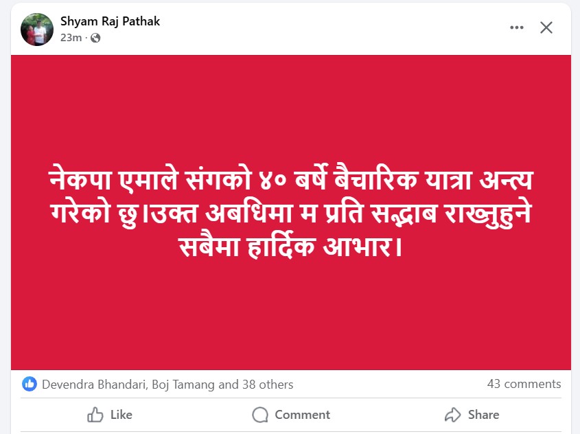 एमालेसँगको ४० वर्षको नाता तोडे श्यामराज पाठकले