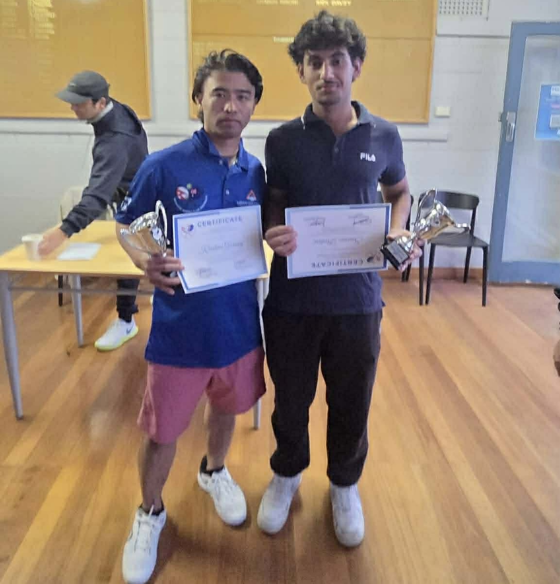 स्थानिय म्यारियन टेनिस क्लवमा भएको प्रतियोगितामा उप विजेता राज बहादुर केशी र दिलिप तमाङको जोडी भएको छ ।