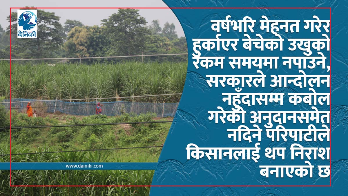 पछिल्लो समय तराईका जिल्लामा बढ्दो वैदेशिक रोजगारीका कारण कृषि कामदार नपाउने समस्या छ । तर, उखुबाली एक पटक लगाएपछि वर्ष दिन केही गर्नुनपर्ने भएकाले पनि धेरै खेती हुने किसानले उखु लगाउने गरेका छन् भने मलखादको समस्याका कारणसमेत धेरै किसान उखुखेती गर्न बाध्य छन् । राज्यले अन्य खेतीको लागि पुग्ने गरी मलखादसमेत दिन नसक्दा उखुखेती बाध्यताको रोजाइमा पर्ने गरेको किसान बताउँछन् । अन्यखेती नहुने भएकाले हरेक वर्ष दुःख पाउने थाहा हुँदाहुँदै पनि उखु रोप्नु परेको अर्का किसान सुनैनादेवी महतोले गुनासो गर्नुभयो । हरेक वर्ष पैसा आउने– नआउने टुङ्गो नभए पनि उखुबाली चिनी उद्योगलाई जिम्मा लगाउने गरेको उहाँको भनाइ छ । यसवर्ष पनि आन्दोलनमा जानुपर्ने अवस्था आउन लागेको भन्दै किसानको समस्या बुझ्न सबैसँग आग्रह गर्नुभयो ।