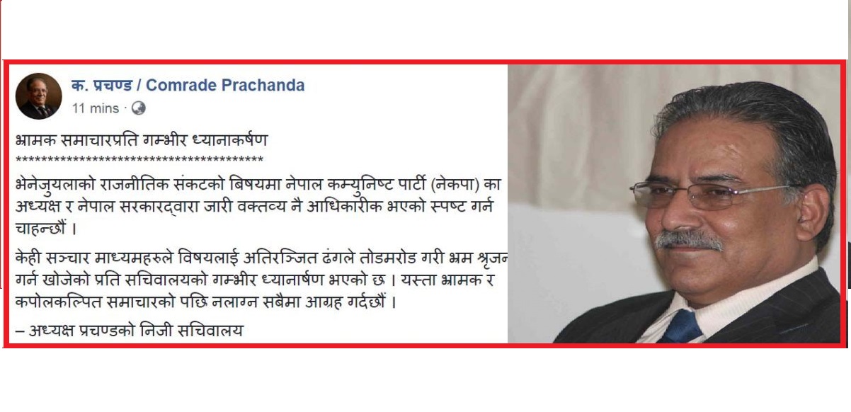 भेनेजुएलाबारे सरकार र प्रचण्डको विज्ञप्ति नै आधिकारिक, भ्रमको पछि नलाग्न सचिवालयको आग्रह