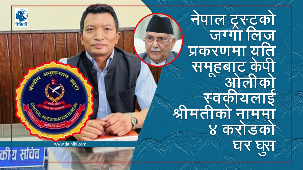 नेपाल ट्रष्टको जग्गा लिज प्रकरणः केपी ओलीको स्वकीयलाई ४ करोडको घर घुस