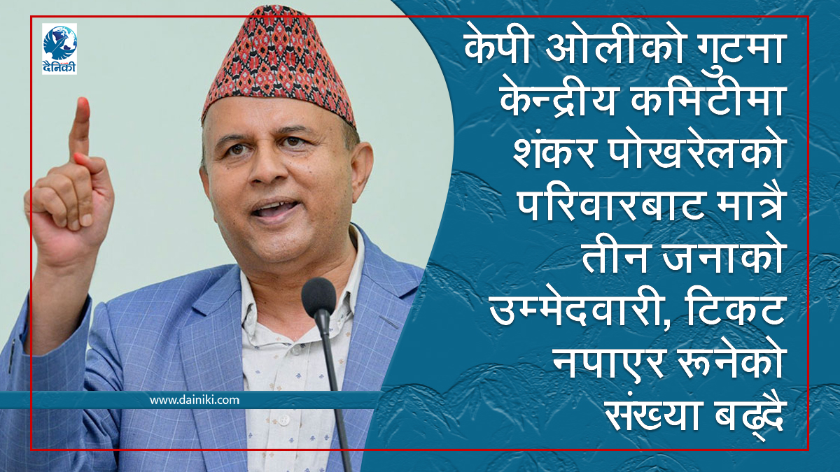 १ पुस, काठमाडौँ । नेकपा एमालेको एघारौँ महाधिवेशनमा महासचिवको उम्मेदवार शंकर पोखरेलको परिवारबाट तीन जनामात्रैले केन्द्रीय कमिटीमा उम्मेदवारी दिनुभएको छ ।