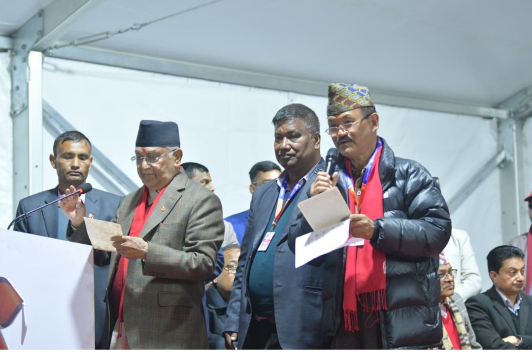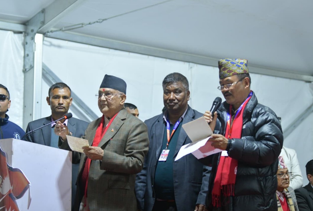 आयोगका अध्यक्ष डा विजय सुब्बासमक्ष नवनिर्वाचित पार्टी अध्यक्ष ओलीले सपथ लिनुभयो भने अन्य पदाधिकारी तथा सदस्यलाई अध्यक्ष ओलीले सपथ गराउनुभयो ।