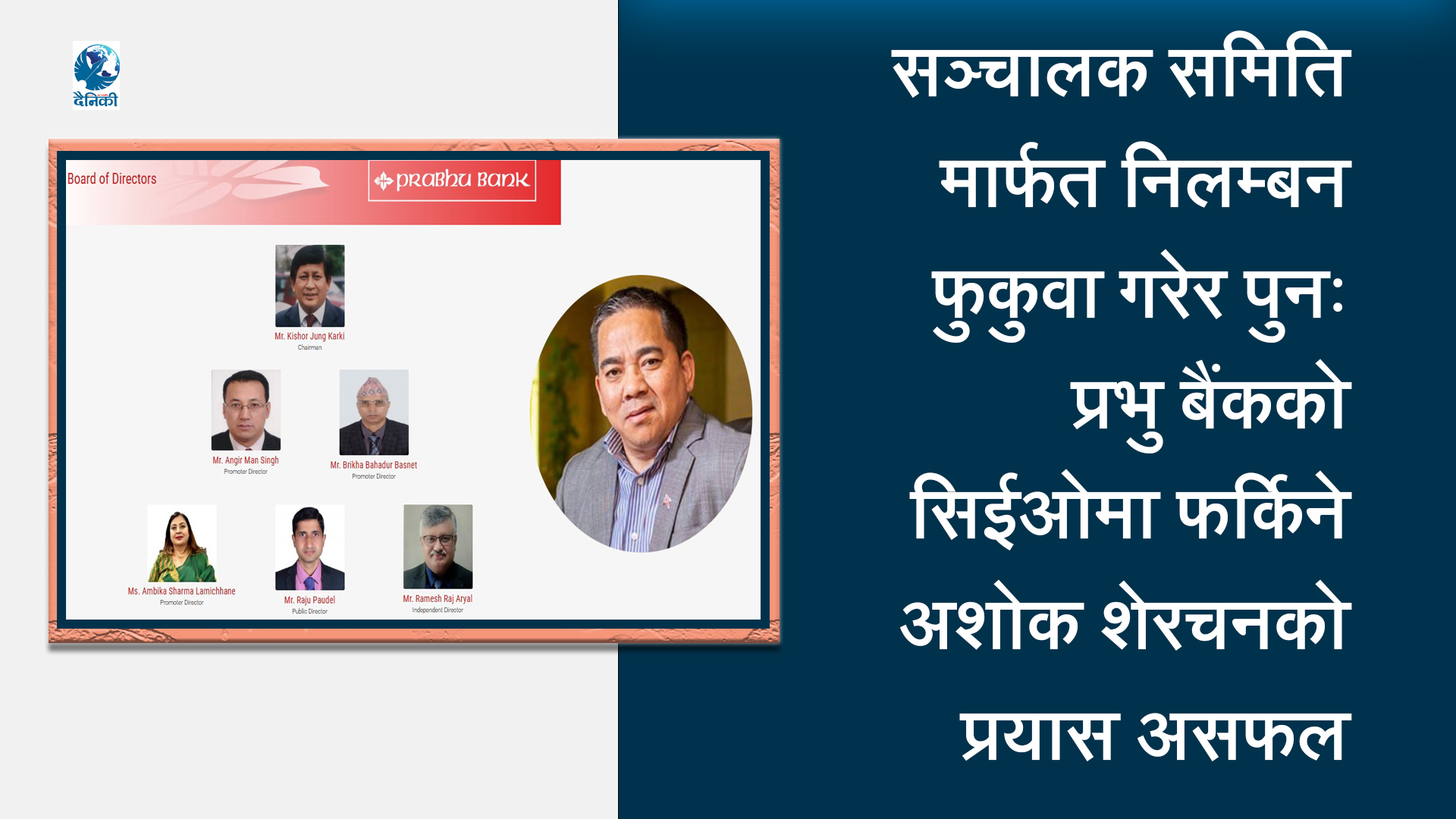 पुनः प्रभु बैंककाे सिईओमा फर्किने अशोक शेरचनको प्रयास असफल